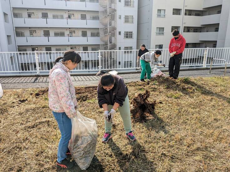 草むしりすごく楽しかったみたいで、スコップまで使って