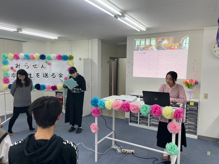 コロナ前は関係企業さまに来賓としてきていただき卒業生を送る会で祝辞をいただいておりました。大きな会場での開催になりました際はお声かけさせていただきますので、ぜひみらせん継続サポーターの方にもきていただけたら嬉しいです。