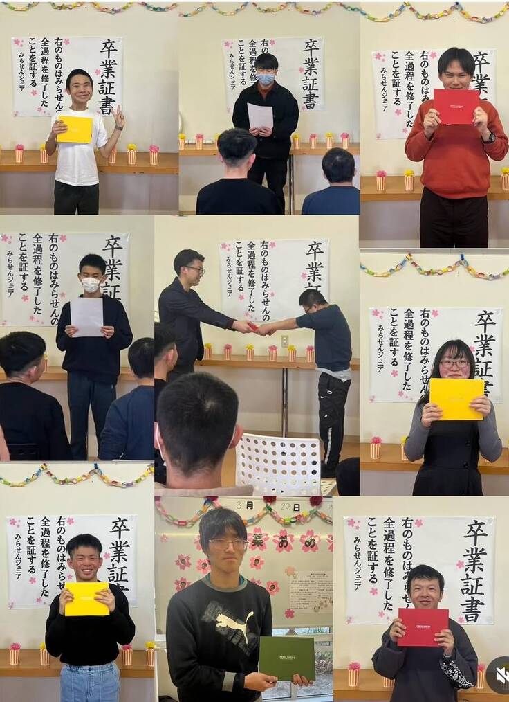 放課後等デイサービス「みらせんジュニア」では、就労訓練を行っています。今年も3教室合計で約20名の方が高校卒業と同時に放課後等デイサービスを卒業していきました。