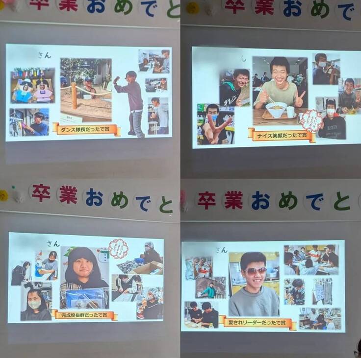 卒業式は数年前まで会場を借りて大きく設営していましたが、コロナ後は各教室で行っています。卒業生が3年間頑張ったことをプレゼンして、卒業証書を渡して、合唱で泣いて…みないた学校みたいな卒業式をおこなっていましたが、