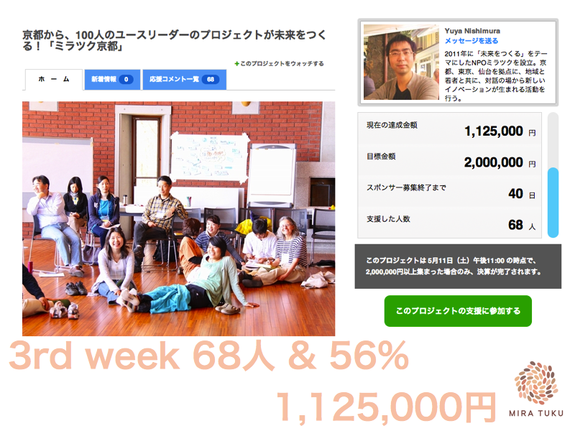 3月12日にスタートしたREADYFOR?掲載も3週間目を終えました。残り5週間!