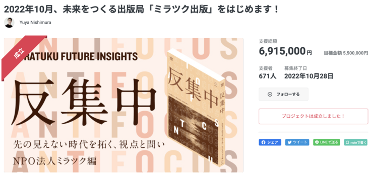 9/26にスタートしたミラツクのクラウドファンディングは、10/28 23:00をもって無事に完了しました!