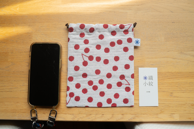 【米織小紋】 ポケット付き巾着 中サイズ(さくらんぼ)の支援はこちらから!