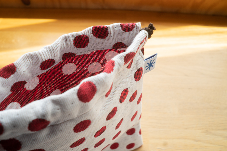 (内側も赤い水玉でかわいい!プリントで柄をつけるのではなく織っている、山口織物鷹山堂さんだからこその技ですね...!✨)