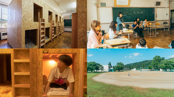 廃校となった小学校が宿泊・地域体験施設に生まれ変わりました。ドミトリータイプの秘密基地のようなベッド、元図書室を活かしたラウンジ空間など、ワクワクが詰まった“学校泊”体験ができます。