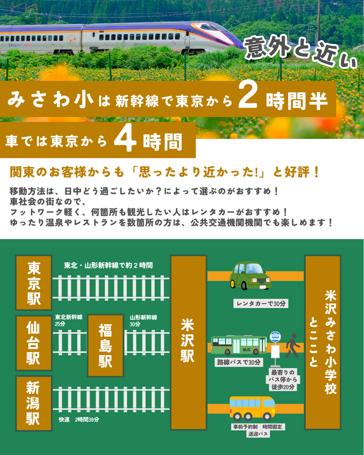 ・東京駅から山形新幹線で約2時間 → 米沢駅 |