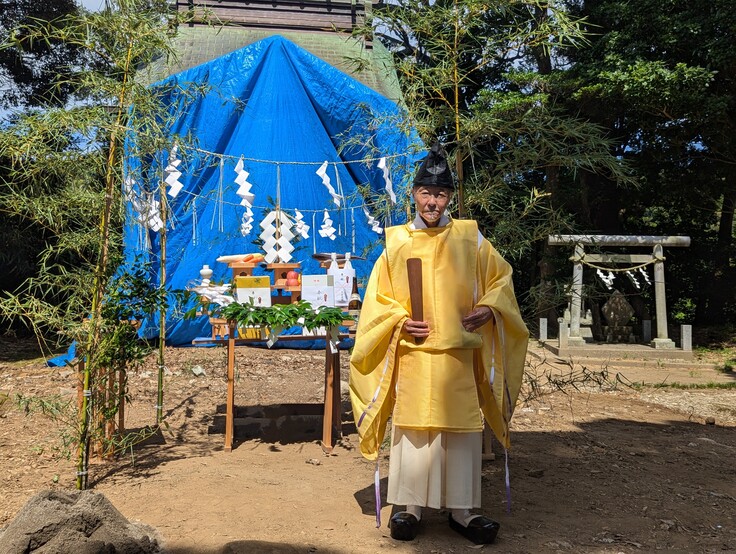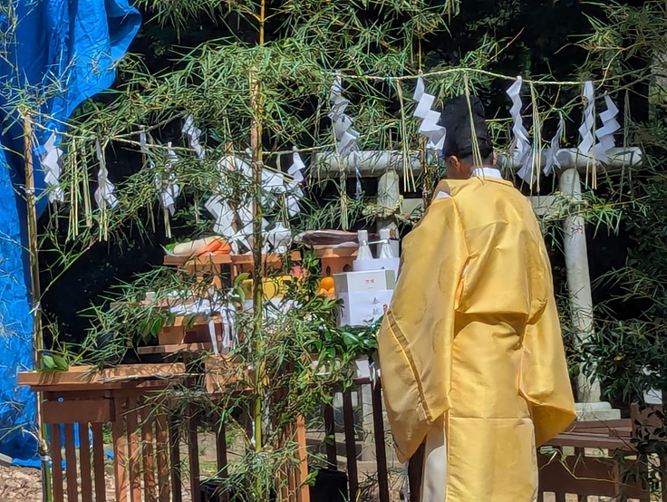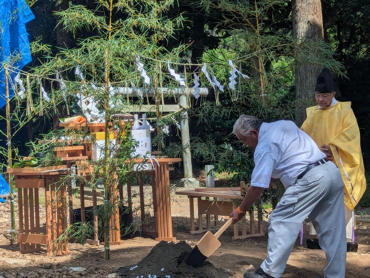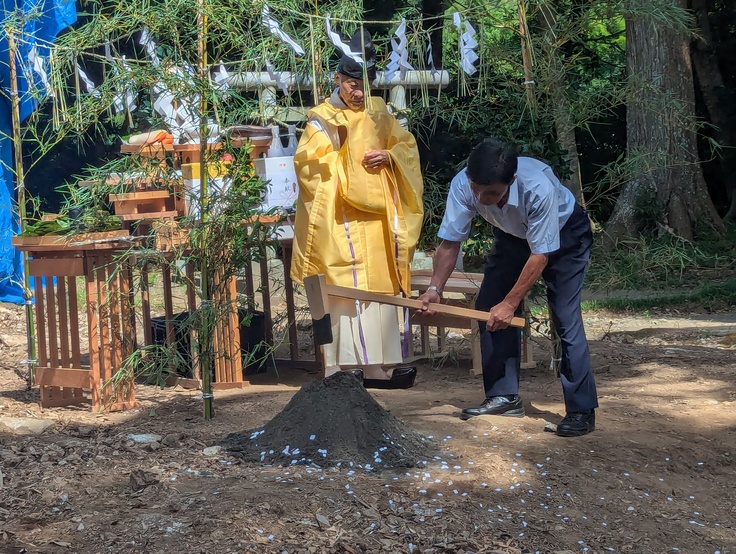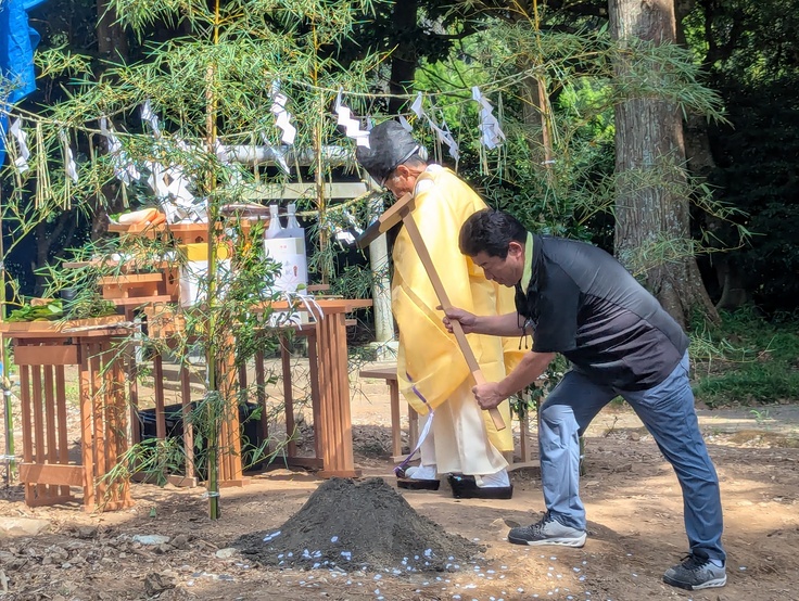 工事の無事を祈り、土地を守る氏神様にお願いする祭事を行いました。