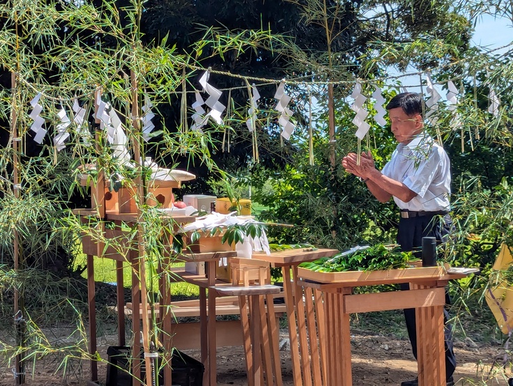 ⑤四方祓 切麻にて敷地の四隅と中央を祓い清める