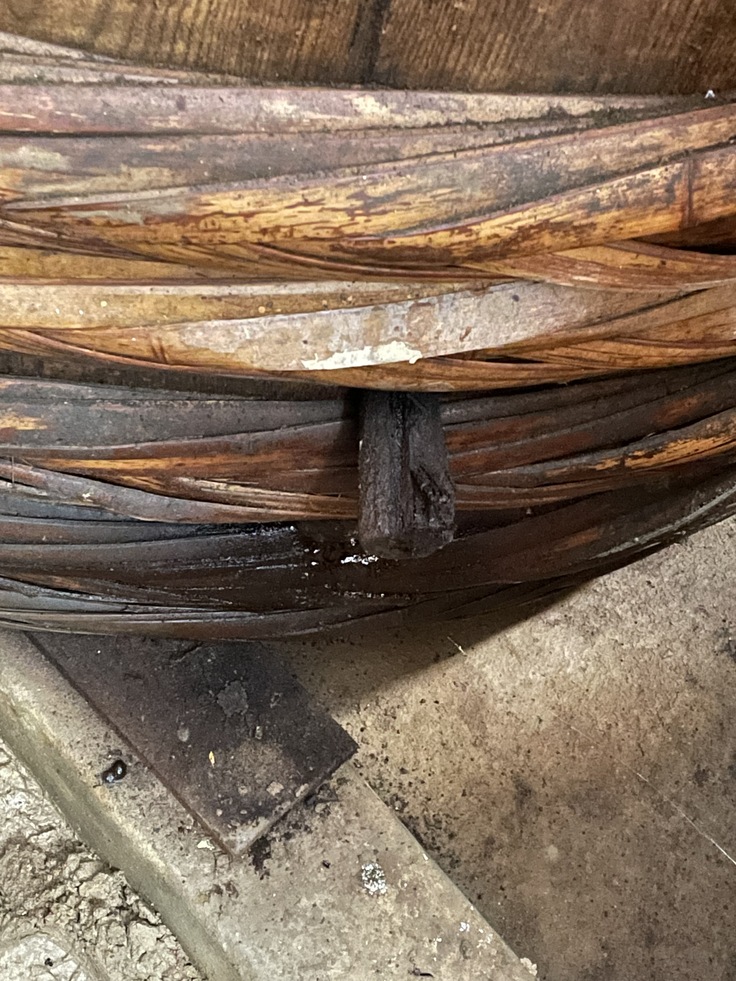 約150年前に作られた木樽は木が薄くなったり、箍(たが)が外れてしまったりと壊れ始めてきました。