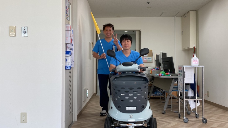 先週から行っていたリハビリテーション室床の改修工事が終わり、5月29日に電動シニアカーが納品されました。