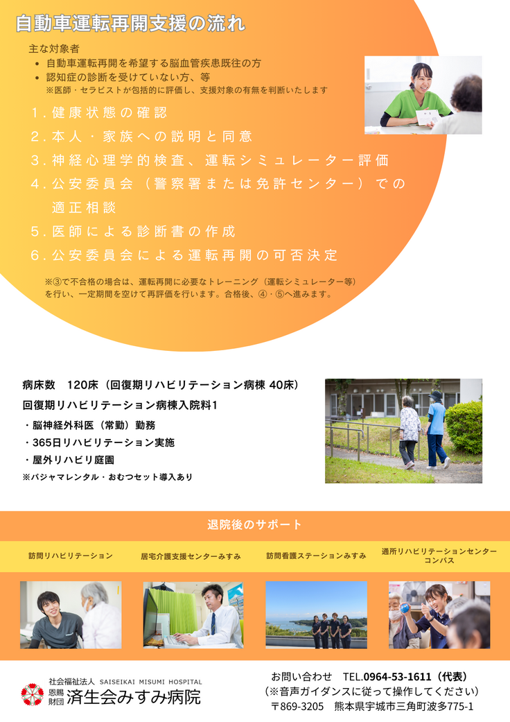 今後は地域住民や近隣の施設、連携機関への広報を行い、より多くの方にご活用いただけるよう努めてまいります。今後とも済生会みすみ病院をよろしくお願いいたします。