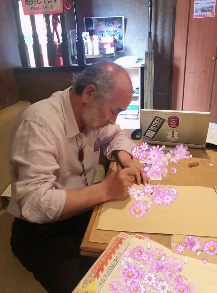 お世話になっているかたへ直接チラシと手紙をしたためて配送する忠会長。