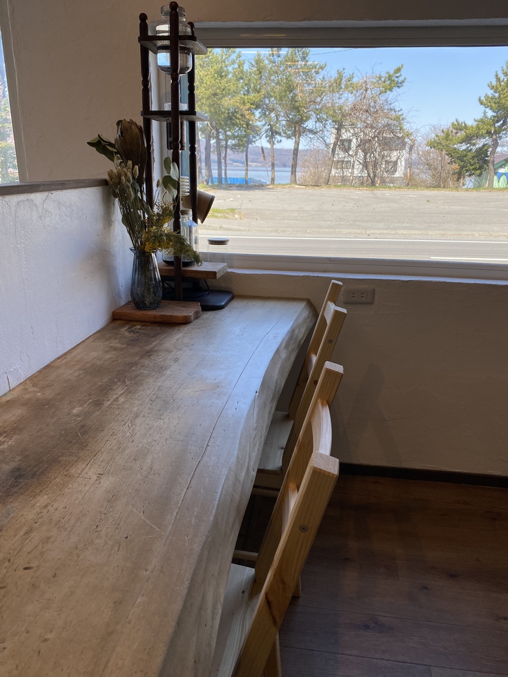 【この大きな一枚板のカウンターは胡亜羅からそのまま持ってきました】