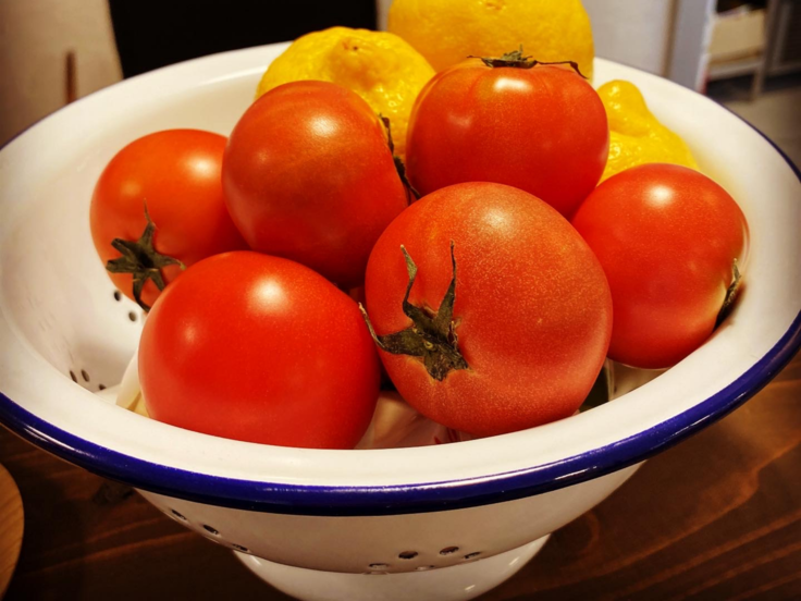 ①洞爺湖産の無農薬トマトとイタリア産のトマト
