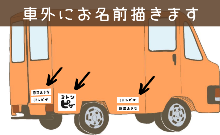 ミトンキッチンカーが走る時や、お店を出している時にチラチラ見てもらえる場所に応援した証としてのお名前を描いてみませんか。