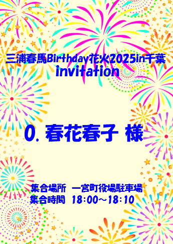 三浦春馬Birthday花火2025in千葉へのご招待状作成完了いたしました