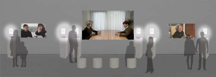 展示イメージ(喪失体験を捉えた映像と、本人から喪失対象へ向けた手紙を展示したインスタレーション)