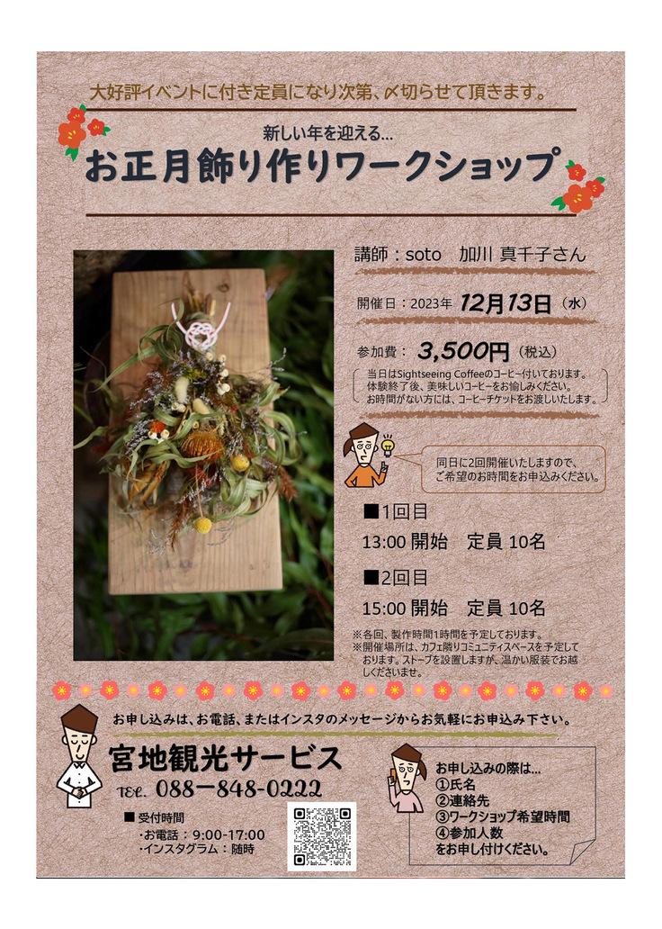 高知で大人気のお花屋さん so to さんをお迎えして、お正月飾りのワークショップを開催いたします🎍☺️