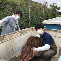 普段は陸上に棲息するツキノワグマを対象に、遺伝子解析から親子関係を調べたりしているのですが、今回はその技術を用いて海に棲むクジラの系統関係や親子関係などを明らかにしたいと思っています。エネルギッシュな田島先生に誘われるがままにメンバー入りしましたが、入ったからには是非とも面白い結果を出したいですね。みんなで力を合わせてクジラの生態解明に少しでも迫れれば最高です。
