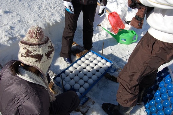 作り続けていきます。急いで作っても「雪玉がすぐ割れちゃった」と