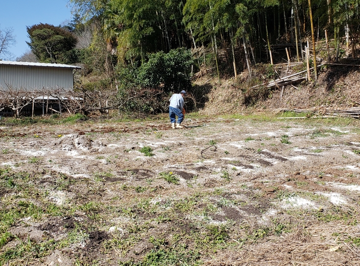快くお返事をいただき、早速石灰と鶏糞を撒いて土壌改良している父です