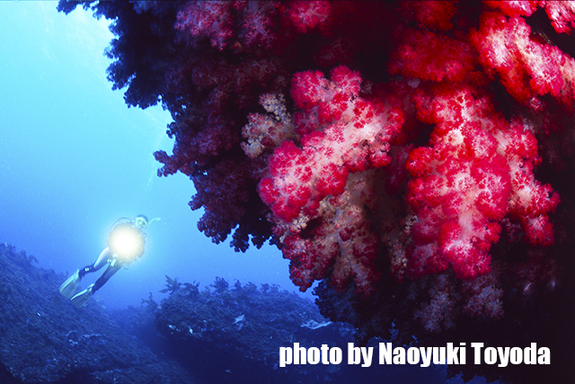 さて、昨日のアマモの話につづき、今日は相模湾の海の森。茅ヶ崎沖の烏帽子岩の海底には、ソフトコーラル(柔らかいタイプのサンゴ)がびっしり。相模川の河口だけに、相当な生活排水が流れ出ているものと考えられます。ソフトコーラルはデリケートで、水質が悪化したり、棲む環境が悪くなると姿を消します。ところがこんなに繁るように棲息しているということは、まだまだ環境として良いということは言えるのではないでしょうか。だからといって、私たちは今まで通りでいいのか? 私は、少しでも環境に対するストレスを減らしてやるような暮らし方を私たちもしなければならない時期に来ていると思います。シャンプーでも洗剤でも、いつもより少し控えめに使う。これをみんなで長いこと続ければ、この景色は絶対に維持できるものと私は考えています。失うのは早いが、失ったものを取り戻すことは難しい。