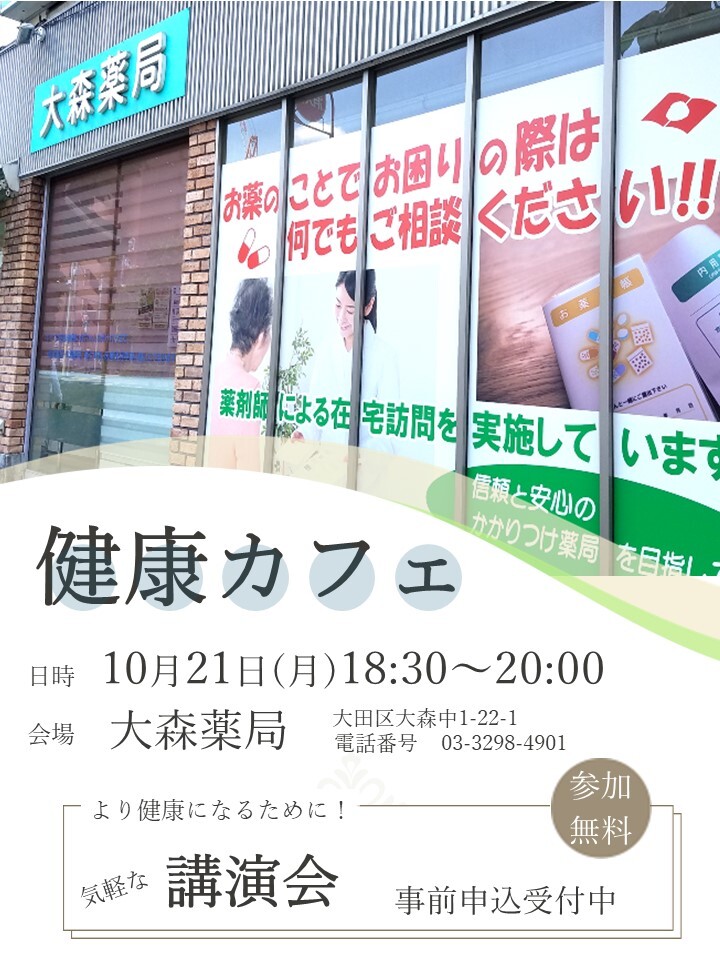 【リターン】講演会(健康カフェ)開催のお知らせ(10月21日(月)18:30~大田区大森薬局)