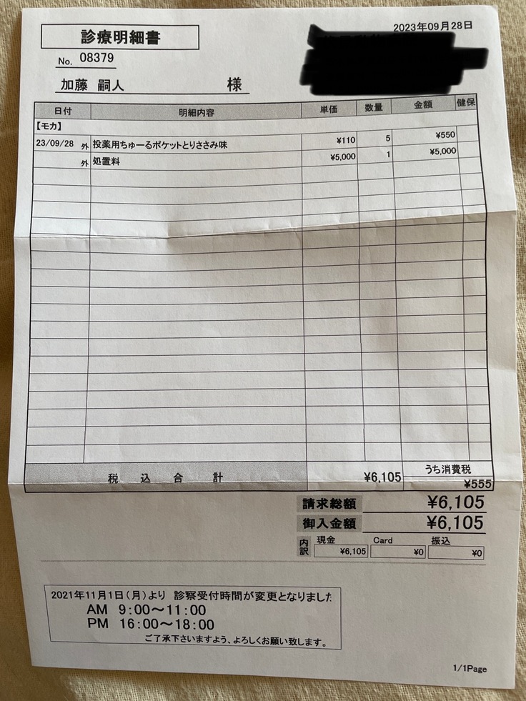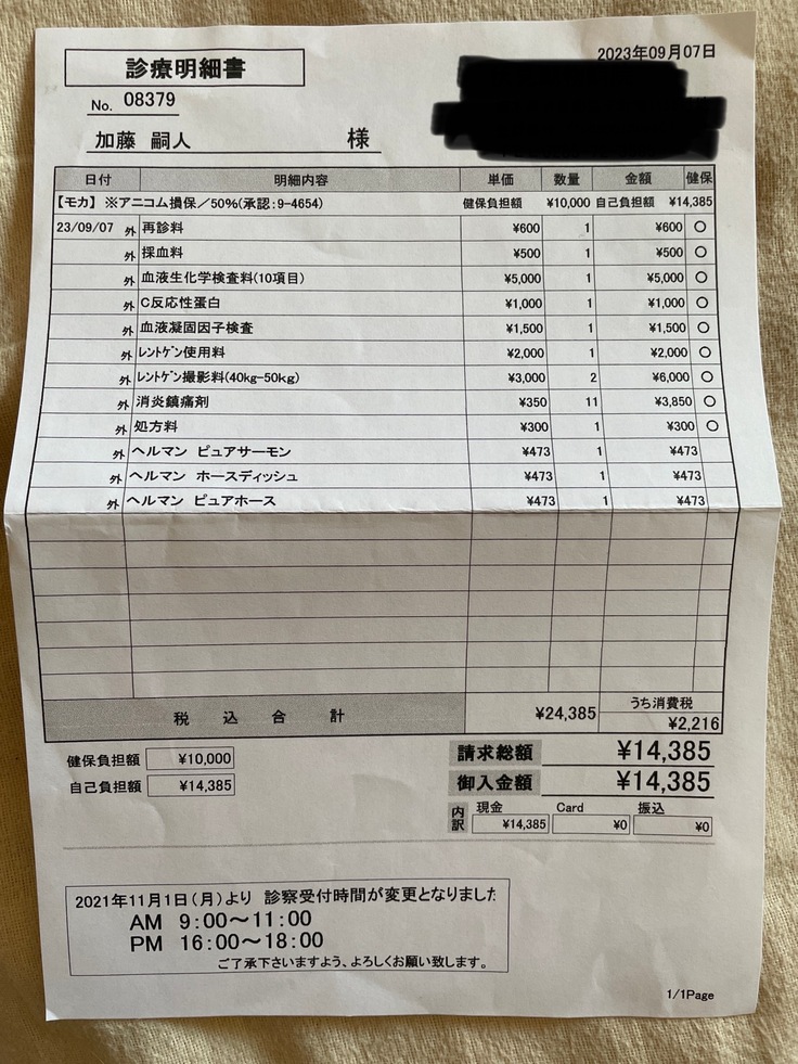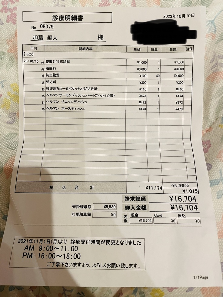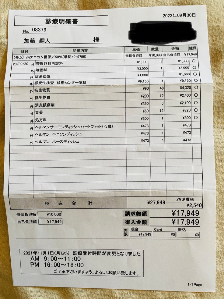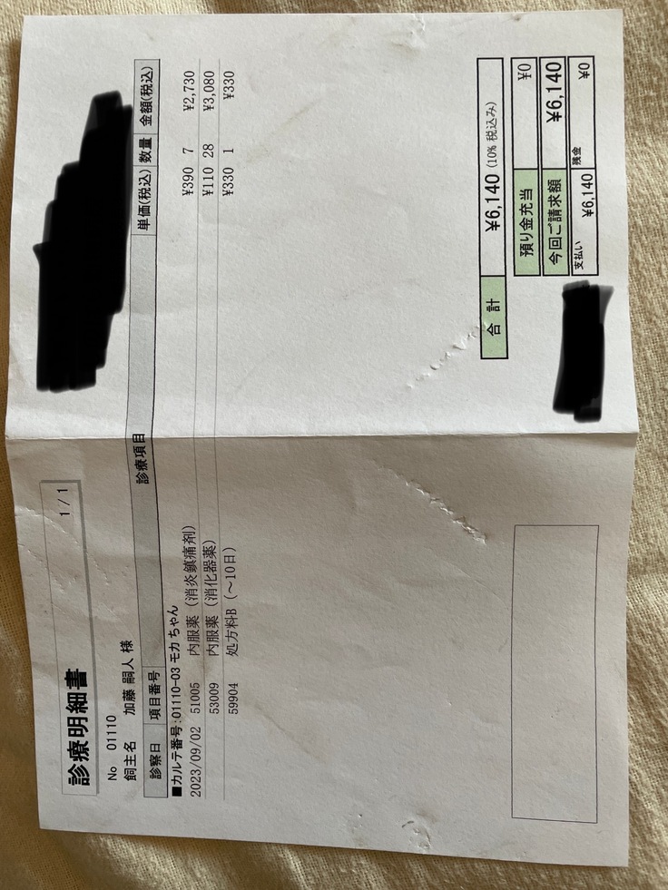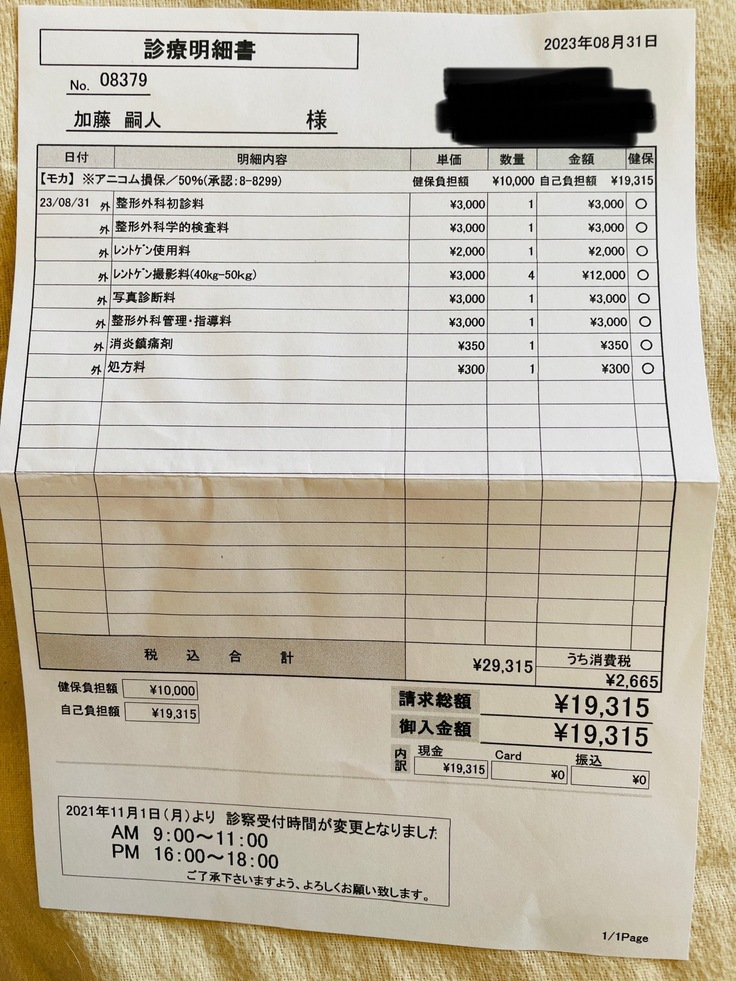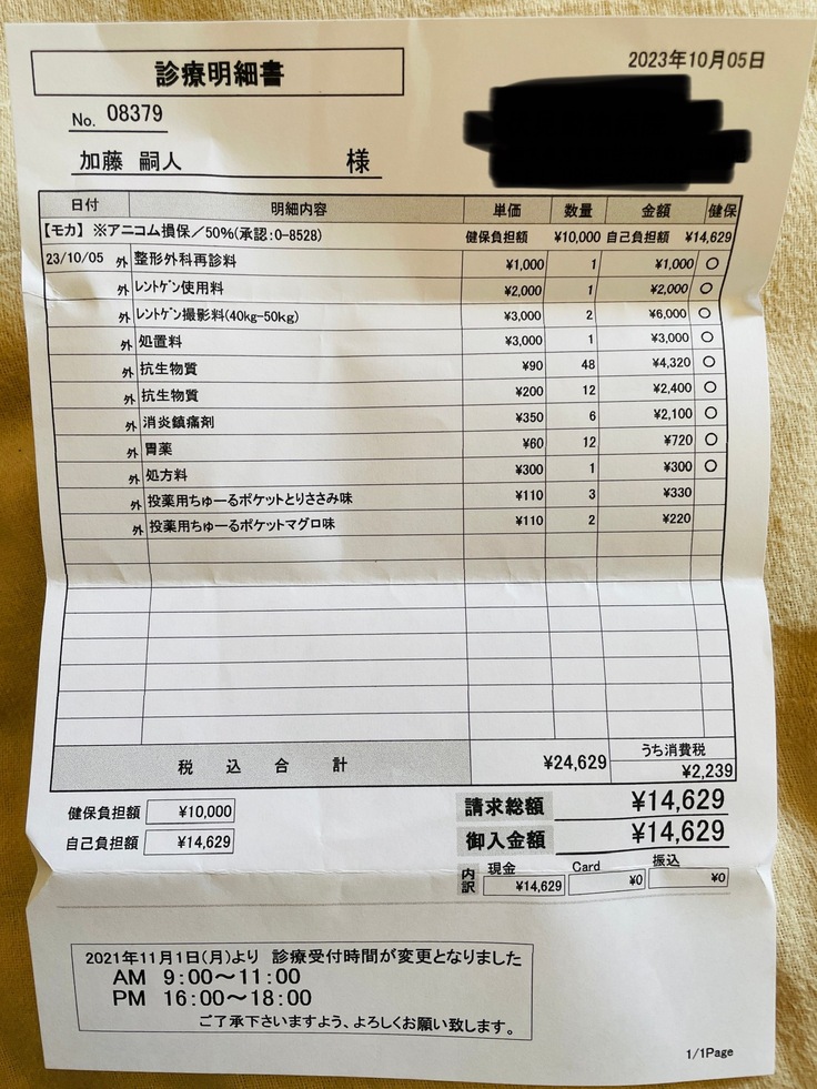 (受診したのが夫なので夫の飼主氏名になっております。)