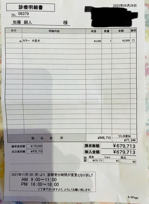 ▶︎ 4. 掲載している資料についてページ上に掲載している診断書や診療明細書などの資料は全て動物病院から掲載の許諾を得ております。