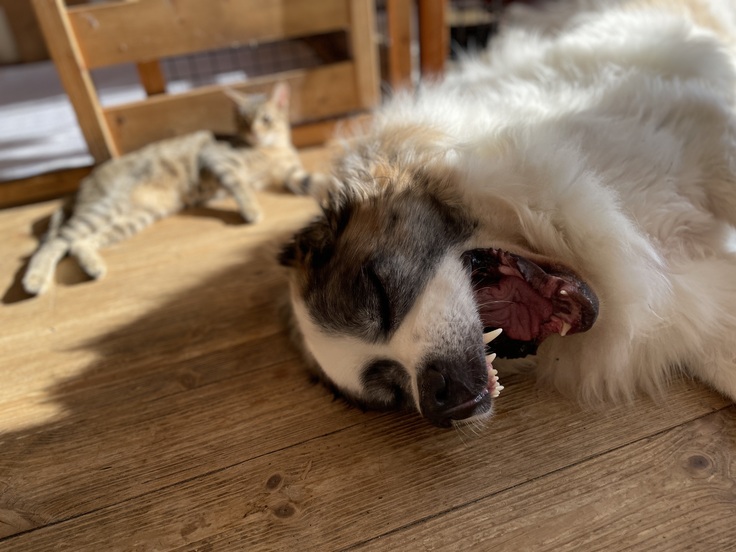 座って過ごす事が多くなったモカ。それでも毎日穏やかに過ごせています。お願いばかりで心苦しいですが、抗がん剤治療の継続の為是非皆様のお力をお借し下さい。よろしくお願い致します。