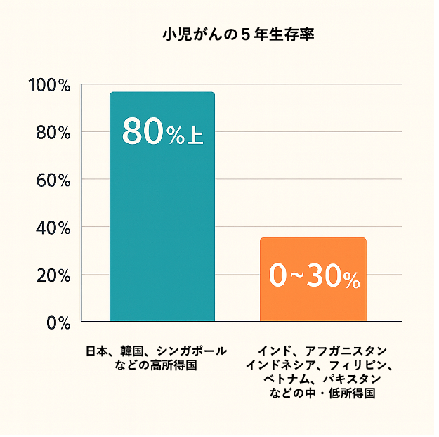 * この深刻な課題に対し、WHO(世界保健機関)は 2030年までに世界の小児がん治癒率を60%に引き上げることを目標 に取り組んでいます。その実現のためには、 アジアにおける治癒率の向上が欠かせません。