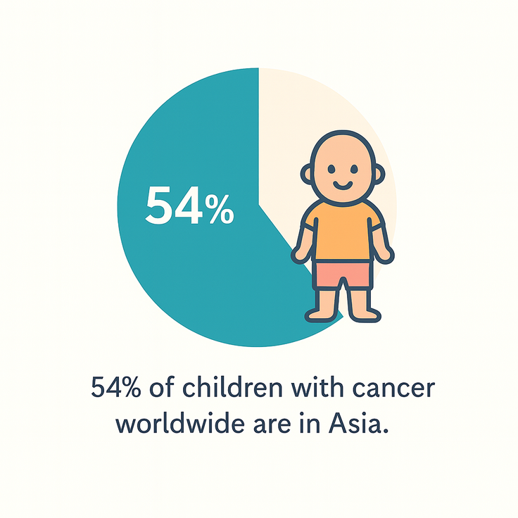 * 世界では毎年およそ40万人の子どもが小児がんと診断されています。そのうち約25万人、 全体の54%がアジアで発生 しています。
