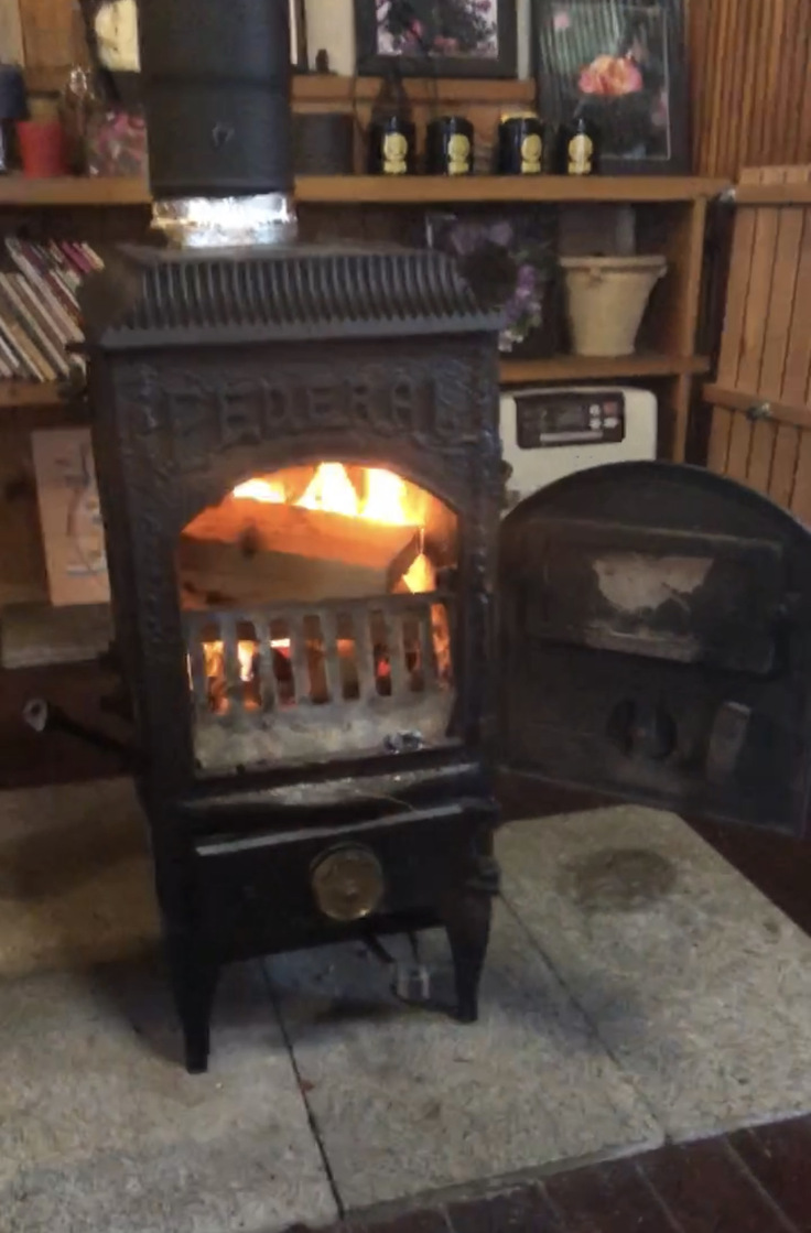 寒い日に薪ストーブで暖まりにきてください。(^^)