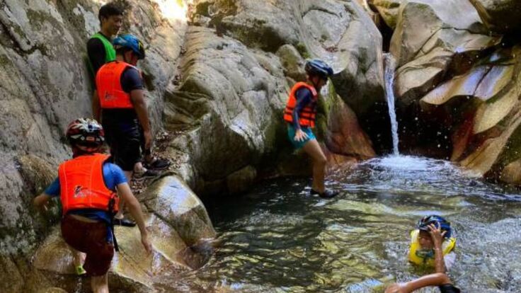 シャワークライミング。傾斜の急なエリアは少ないため、小さなお子さんでも楽しめるルート設定になっています。