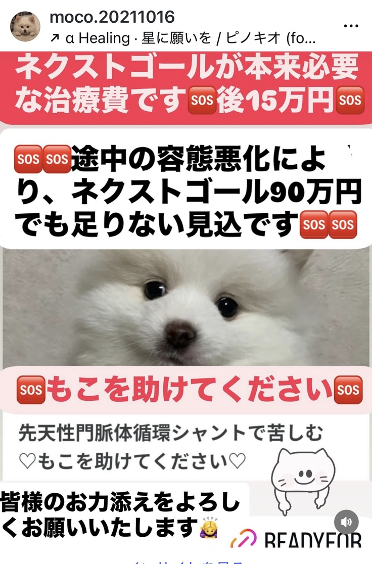 もこに必要な治療費は、目標金額の20万円ではなく、ネクストゴールの90万円です。