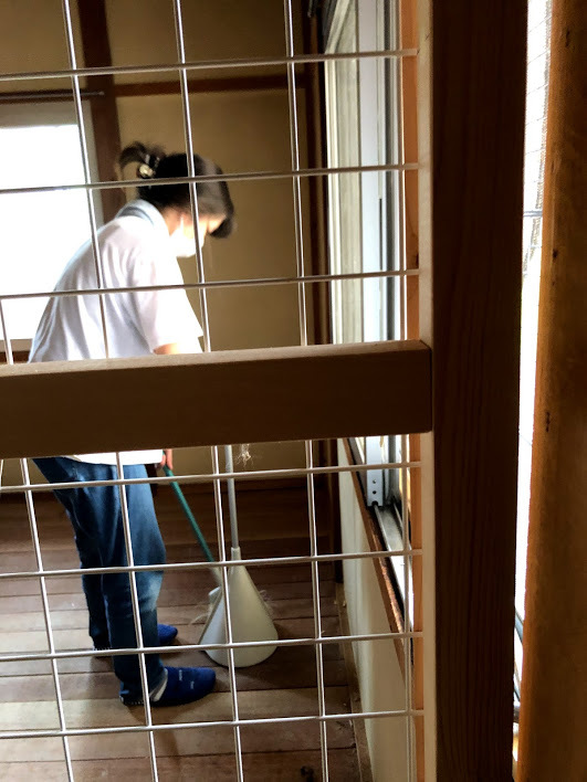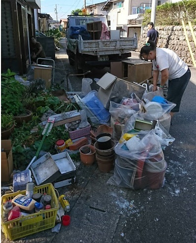 一日目には、女性人ばかりで、畳上げ、できる限りの物品を外に出す作業。