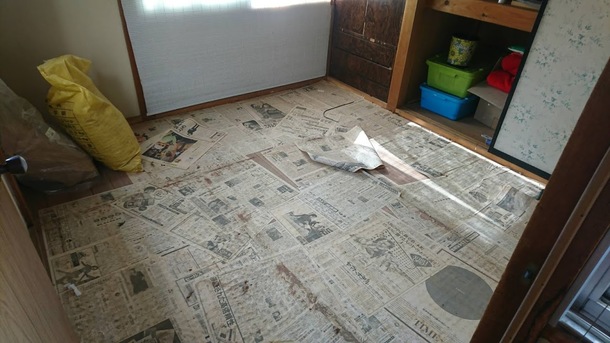 古い畳を上げてみると、これまた、古い新聞紙!!