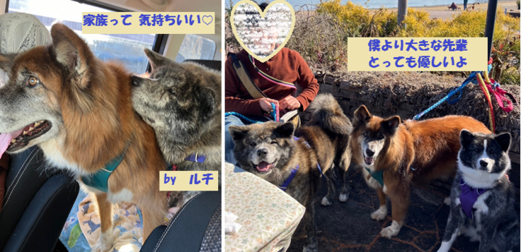 大きなルチよりももっと大きな先住さんと、同じ秋田犬の女の子。