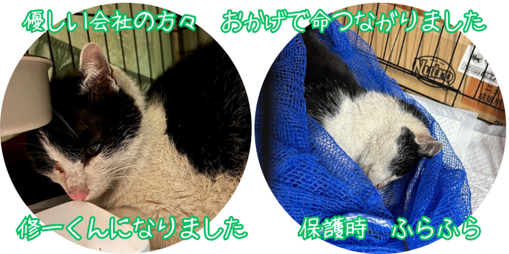 夜間の通報。メンバーが駆け付けたところ、ひどくガリガリで衰弱の激しい猫を発見。近くによるものの、すぐに保護はできず翌日から聞き込み開始。
