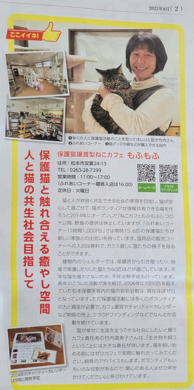 ちょうどクラウドファンディングを始めようとした頃、保護猫の活動をしている場所ということで取材していただきました!