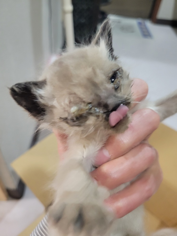 目も鼻もぐちゃぐちゃ、やせ細ってアバラを触れる状態