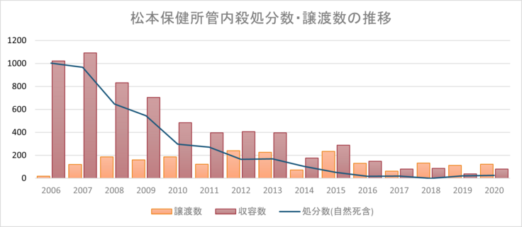 松本保健所の殺処分を無くす活動を続けていくため、「ねこカフェもふもふ」という成猫がいられる場所を作りました。同時にシェルターでの受入れをすることで、15年前から活動していた団体と共に2年後には殺処分ゼロ(所内死亡除く)になりました。