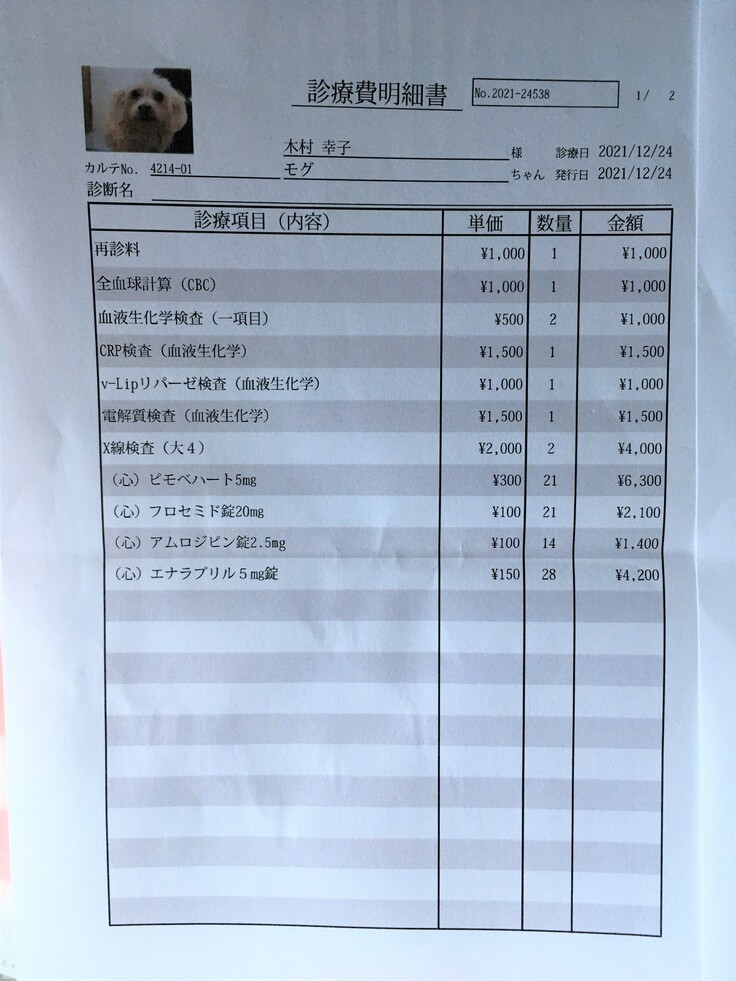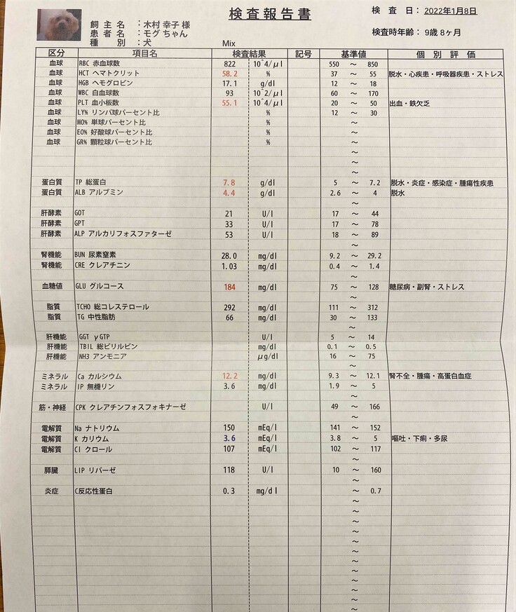 昨日1月8日(土)にモグの術前最終検査に行ってまいりました。