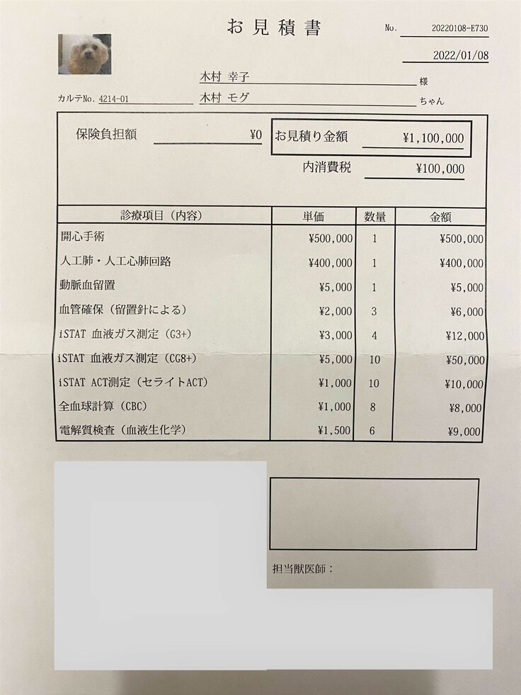 また、手術費用の最終見積をこちらに公開させていただきます。