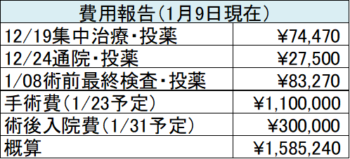 その結果を踏まえて、予定通り1月23日(日)に手術が行えるとの事です。