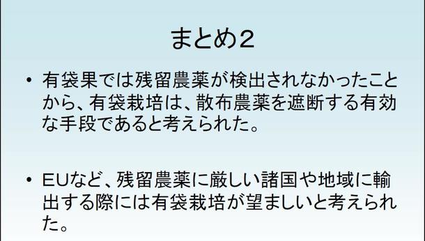 りんごもカナダに輸出しようとしたところ、袋を被せて作る「金星」以外は残留農薬が基準値以上で、輸出できなかったのです。しかし、青森県では黒星病・ふらん病防止条例があり、無農薬での栽培は禁止されています。最低限の農薬散布は散布せざるを得ないのです。
