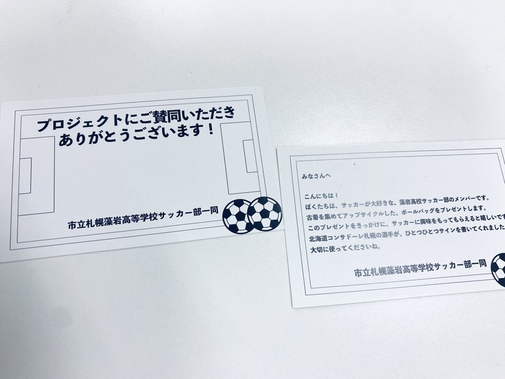 多くのご支援を頂いた方々に感謝の気持ちを込めたメッセージカードの記入と、これから実際に子どもたちにボールバッグを届けるための準備を本格的に進めていきたいと思います。