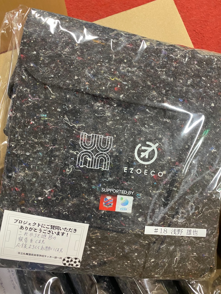 コンサドーレ札幌の選手のサインが入ったボールバッグを、鈴木商会さんから藻岩高校に届けていただきました!
