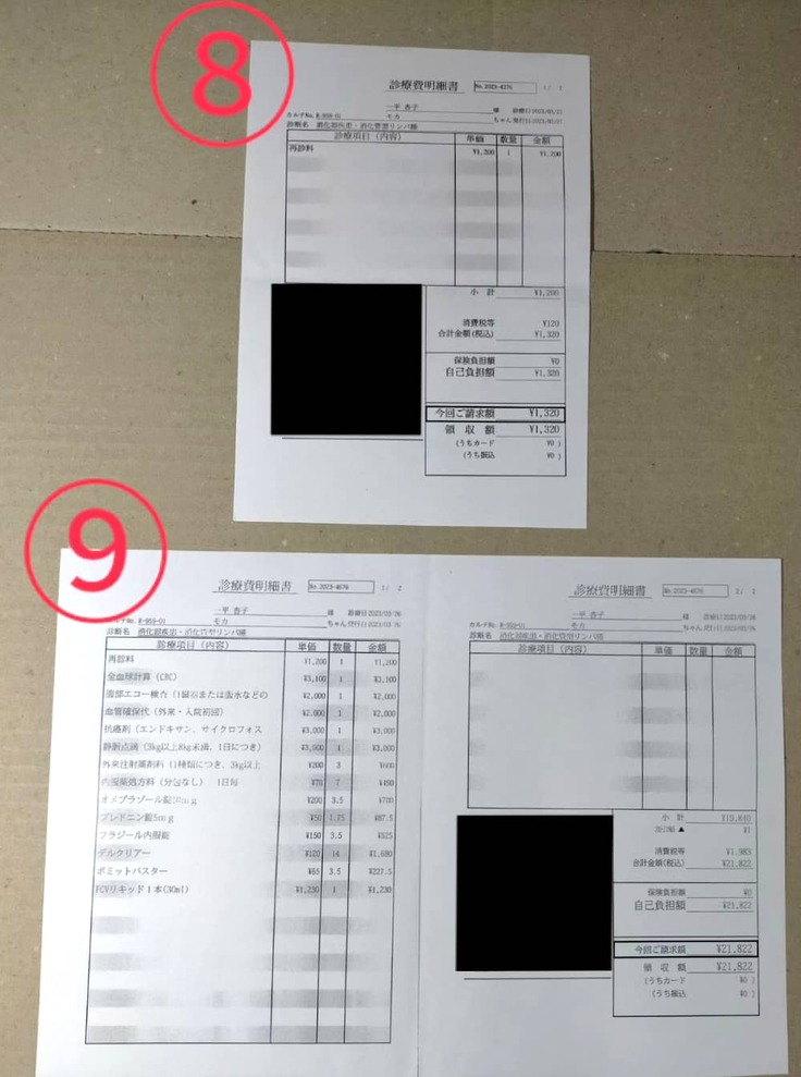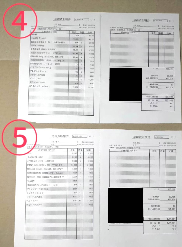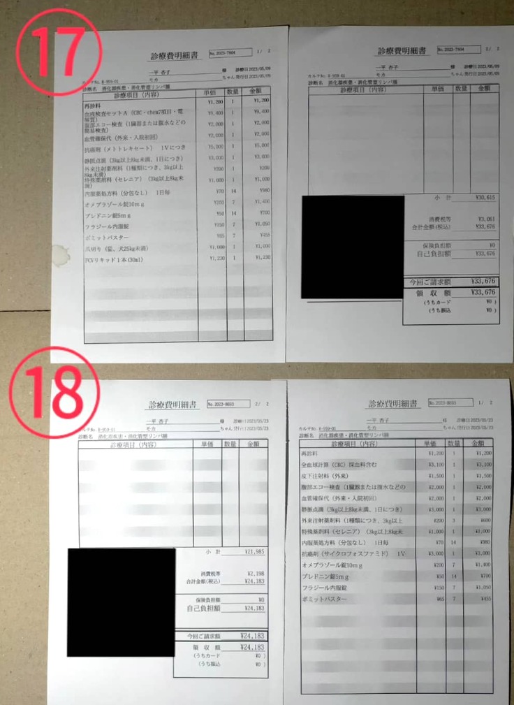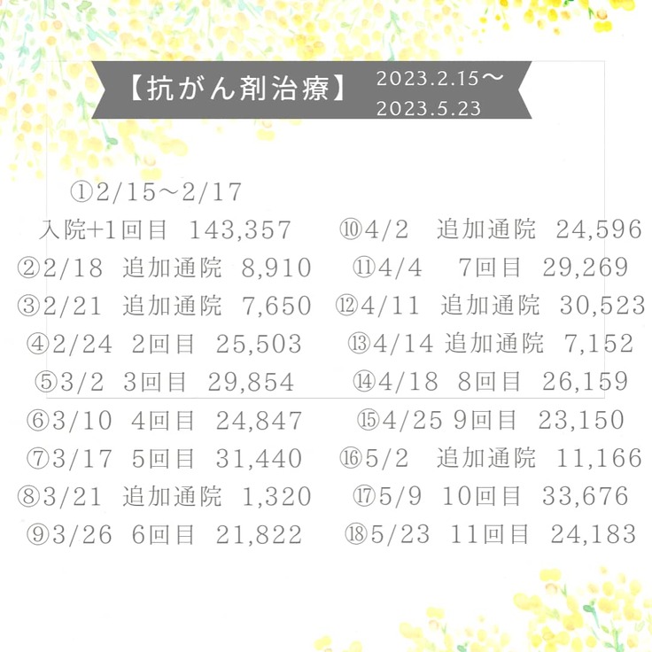 現在、モカの抗がん剤治療を進めるに辺り2023年2月15日~5月23日の約3ヶ月間だけでも