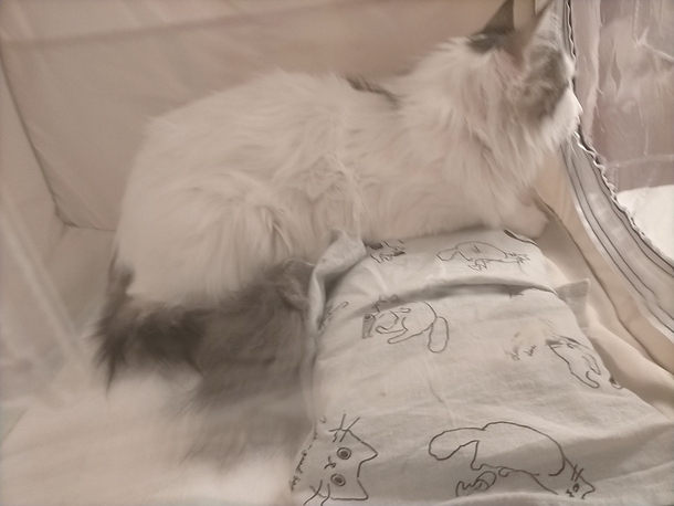 段々暑くなってきたので、今日は氷枕を一緒に入れてあげたら、さっそく上に乗ってくつろいでいました︎💕︎